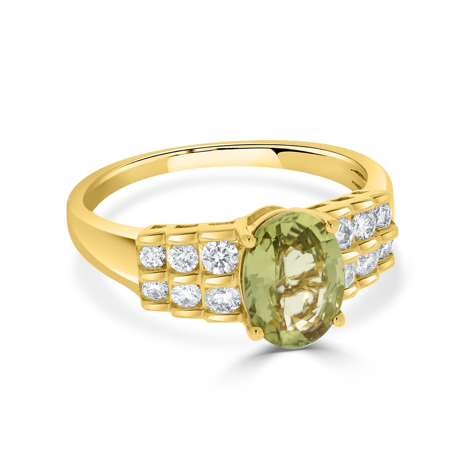 Luxury Rings Are Necessary Pieces Of Jewelry In Every Wardrobe. Crafted In 14k Gold And With An Oval-cut No Heat Certified Sapphire, This Ring Makes Every Single Moment Memorable. Further, The Round Diamonds Add A Timeless Touch To The Ring.