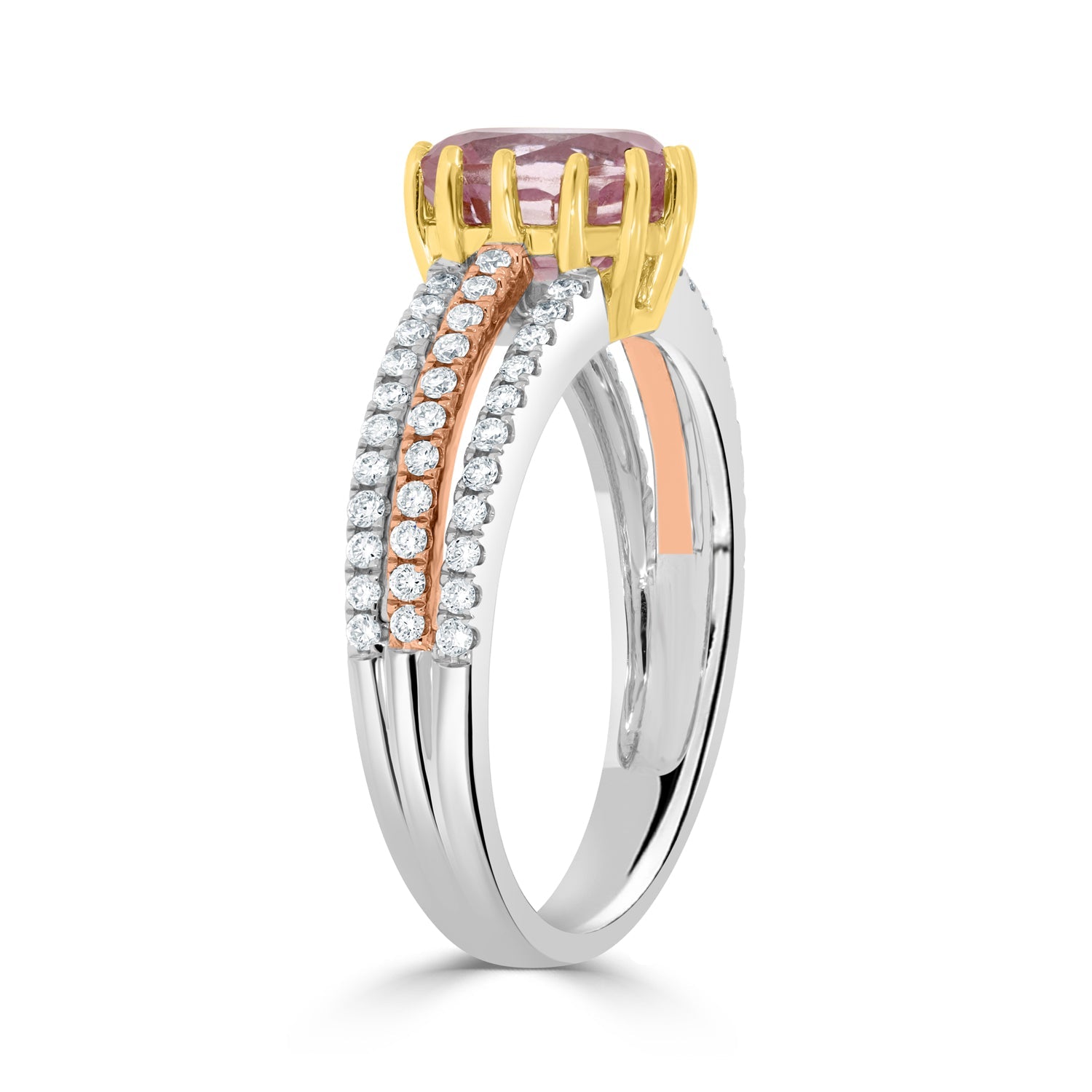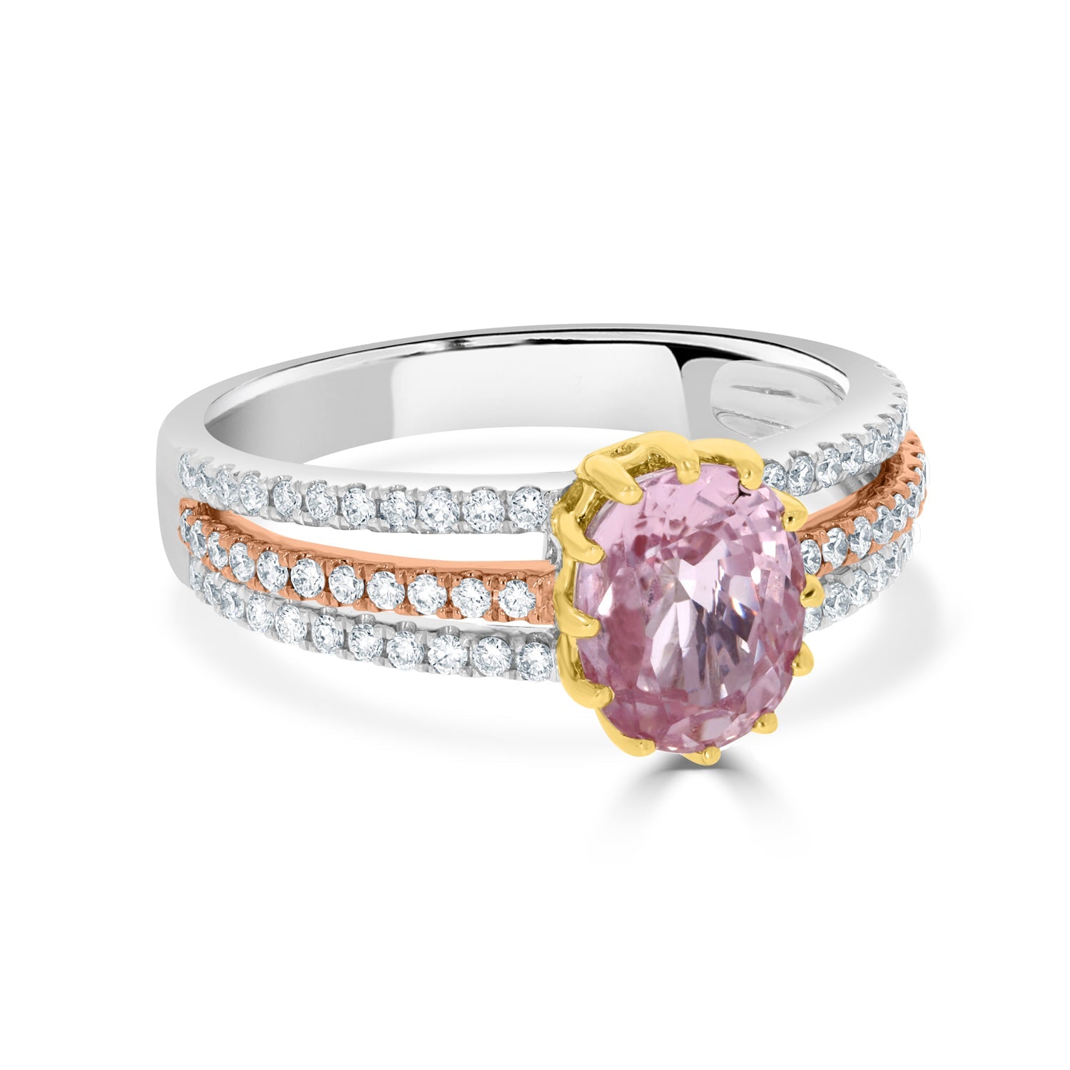 This Ring Exudes Luxury With The Stylishly Set Combination Of Oval Cut No Heat Certified Sapphire And Round Diamonds Is A Visual Delight. The Ring Is Crafted Of 14k Two-tone Gold To Enhance The Luxury And Elegance Of The Look.