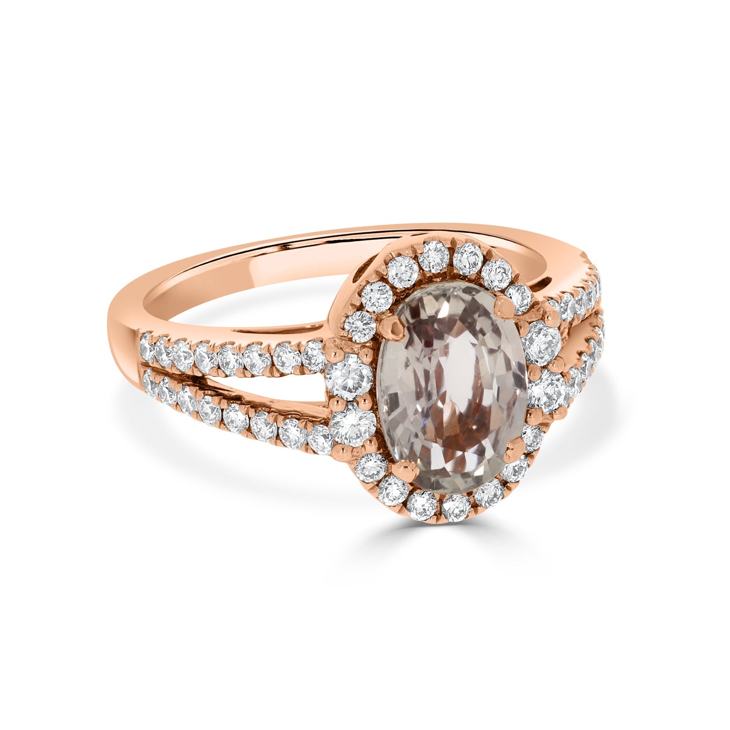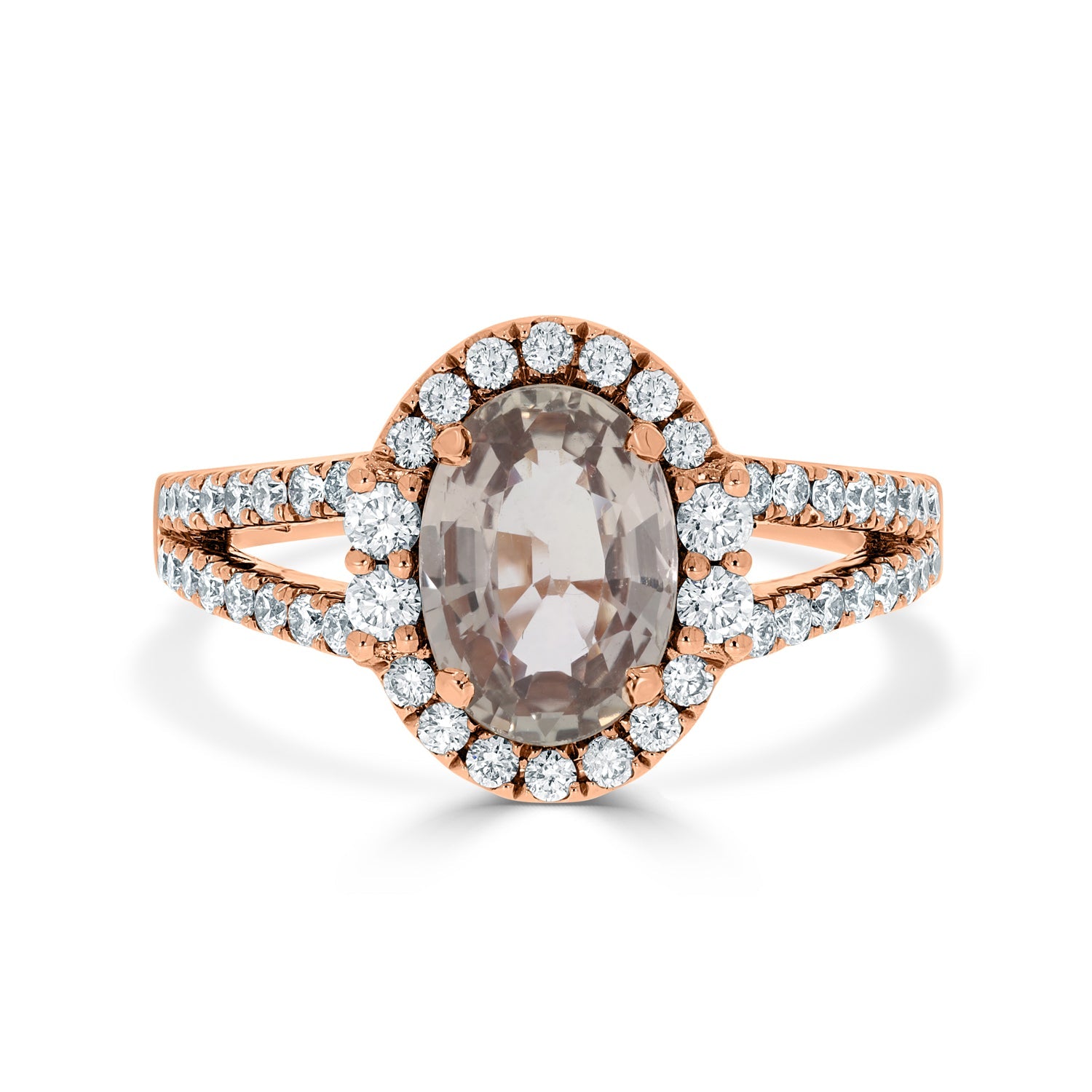Crafted With 14k Rose Gold, These Rings Come With An Oval-cut No Heat Certified Sapphire And Round Diamonds That Are Set In The Specially-curated Design To Embody Celestial Charm. Wear It With Pride To Complete Your Luxurious Look And Get Compliments.