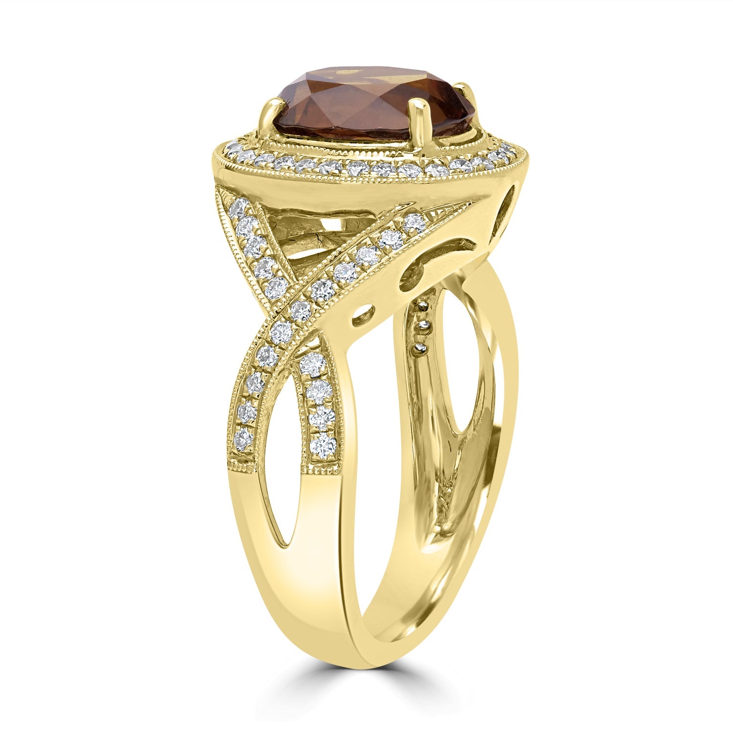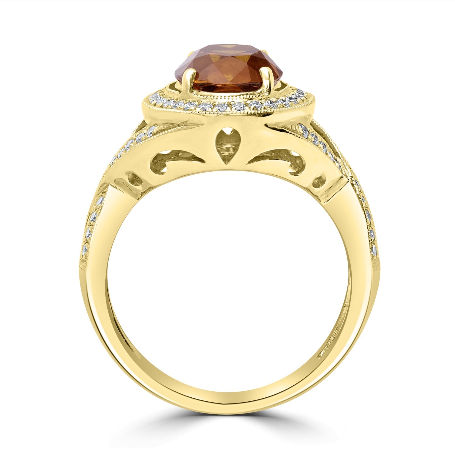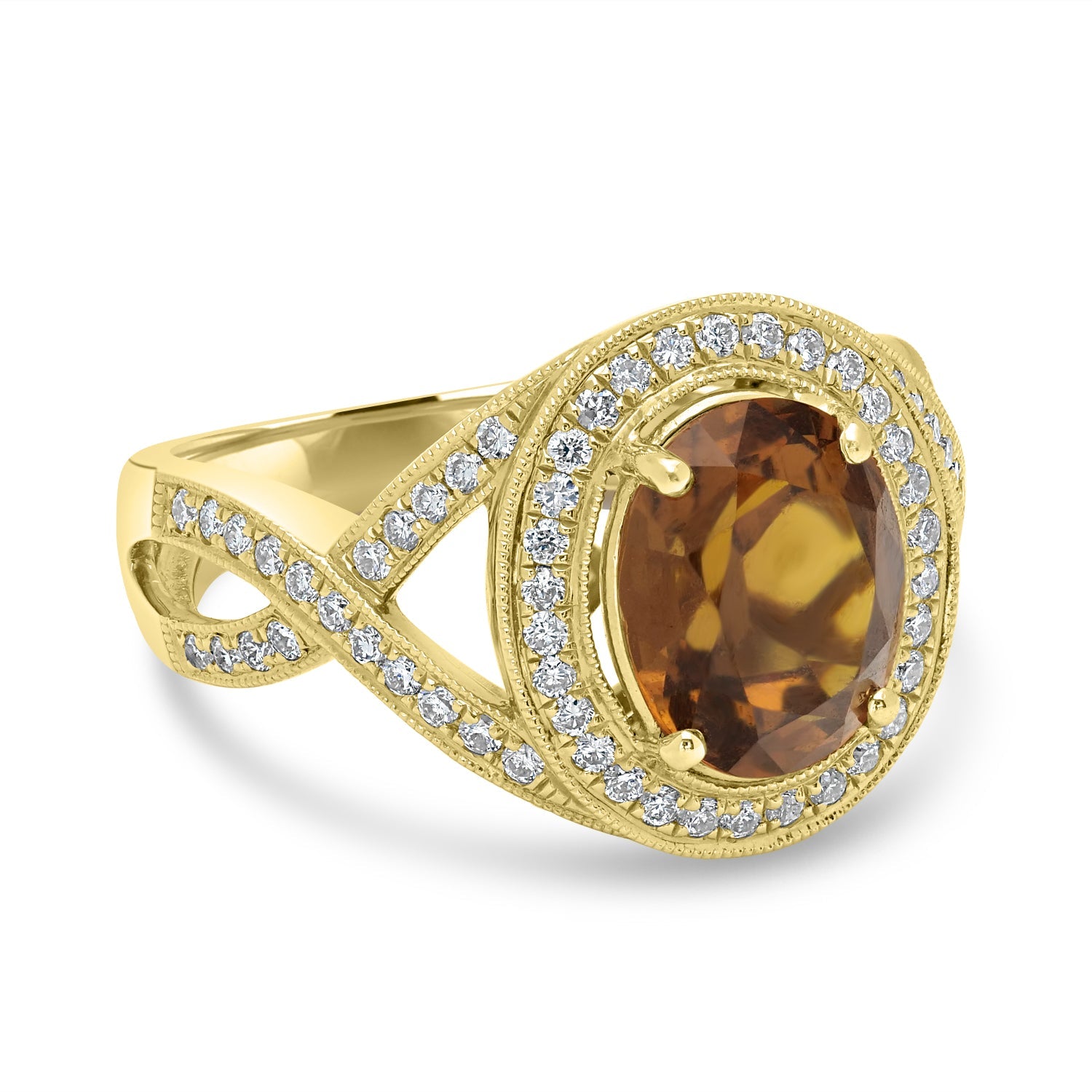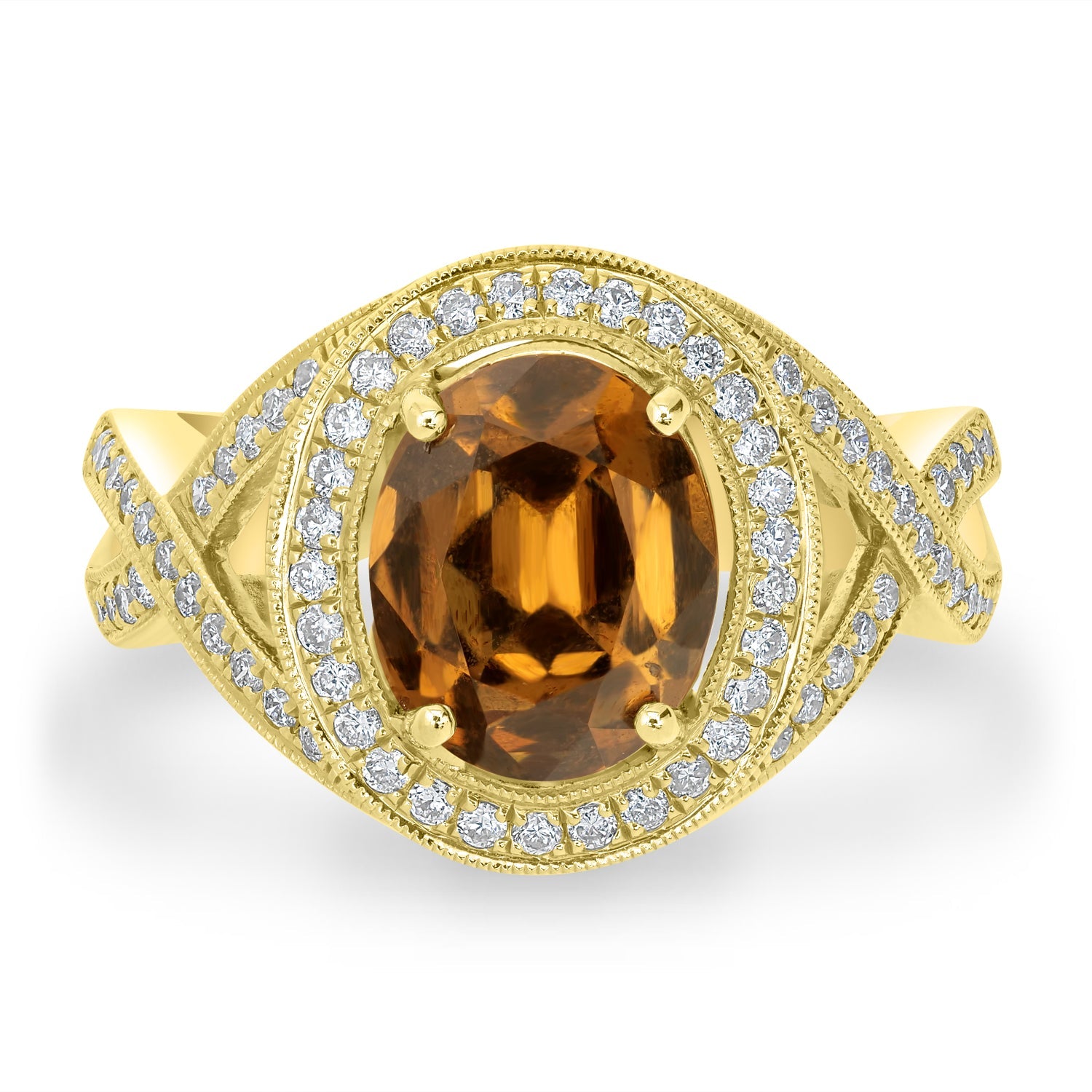 oldenThis beautiful ring is set with an oval-cut Sapphire and round Diamonds that will brighten everyones day. Designed within 14K yellow gold ring, this ring is unforgettable.