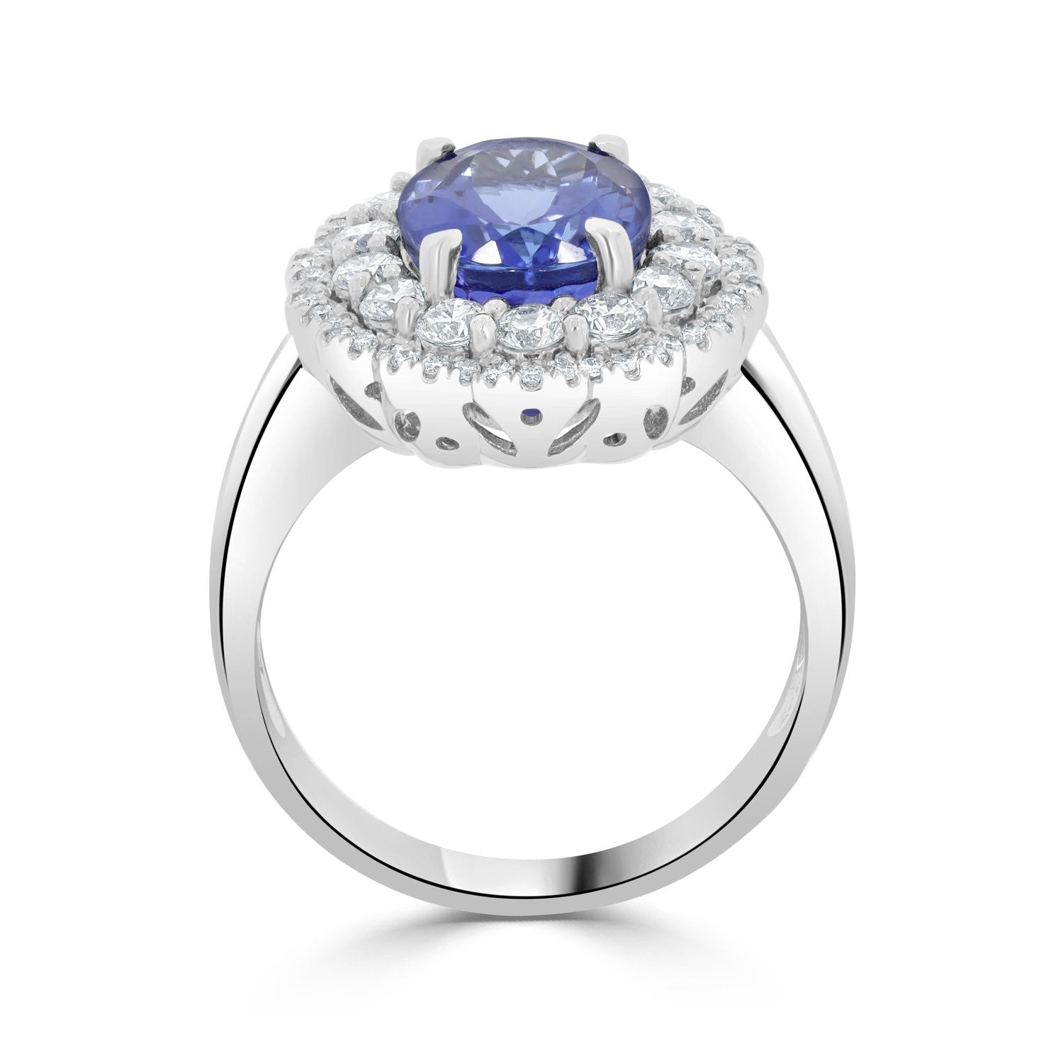 "Crafted with 14K white gold, this gorgeous ring is embellished with a beautiful oval-cut Tanzanite and glimmering round Diamond that boast unmatched beauty."