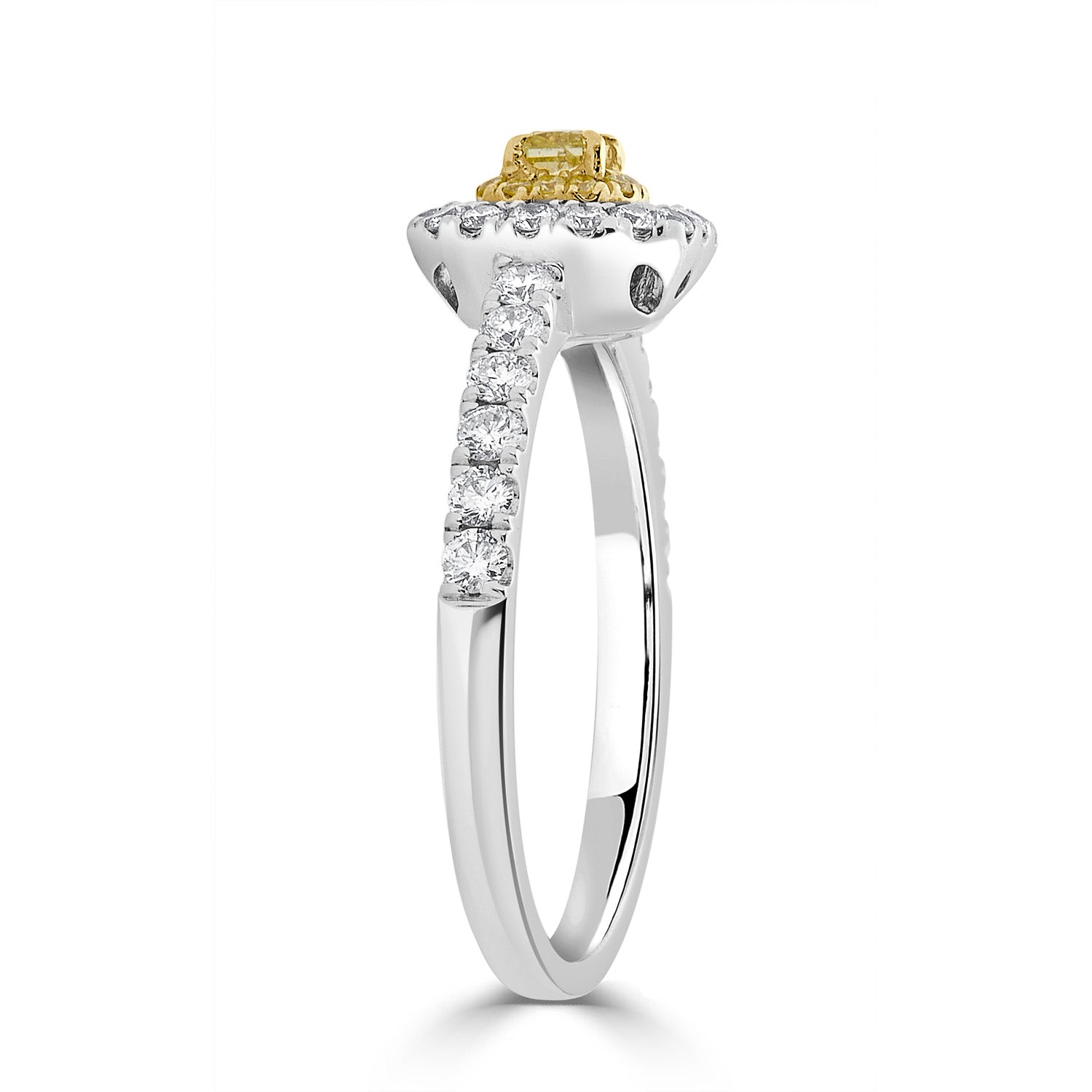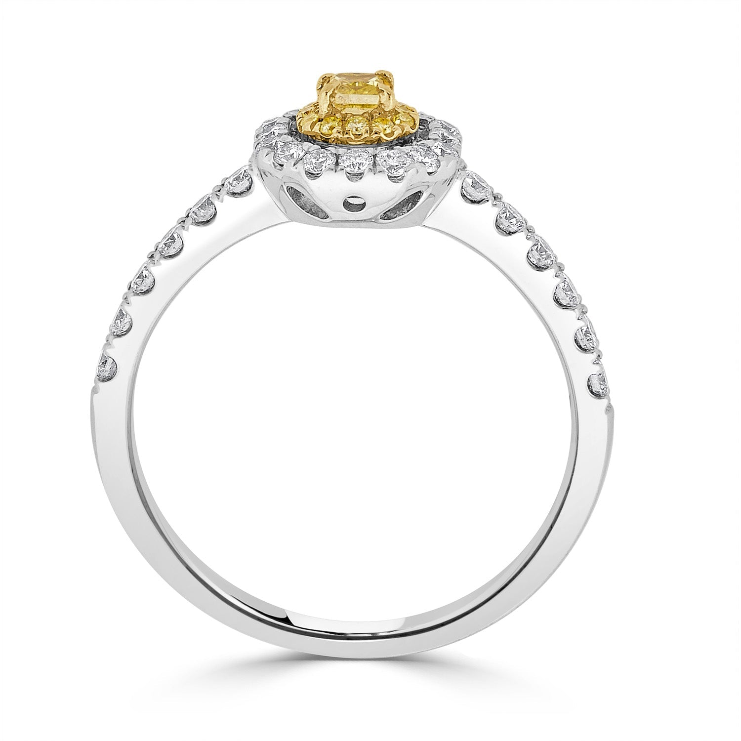 These rings are crafted with an extraordinary design on 18k two-tone gold. Featuring cushion-cut Diamond in a stylish setting and surrounded by the richness of round Diamonds, this ring can go from simple to luxury style outfits.