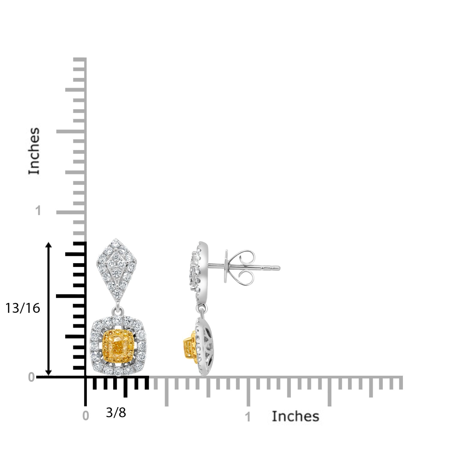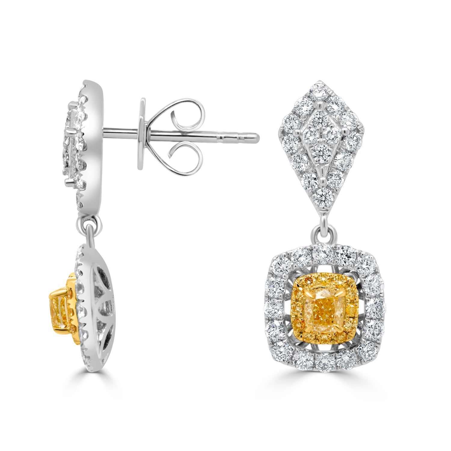 Crafted from 18K two-tone gold and set with elongated cushion-cut yellow Diamond, this pair of earrings are super stylish.