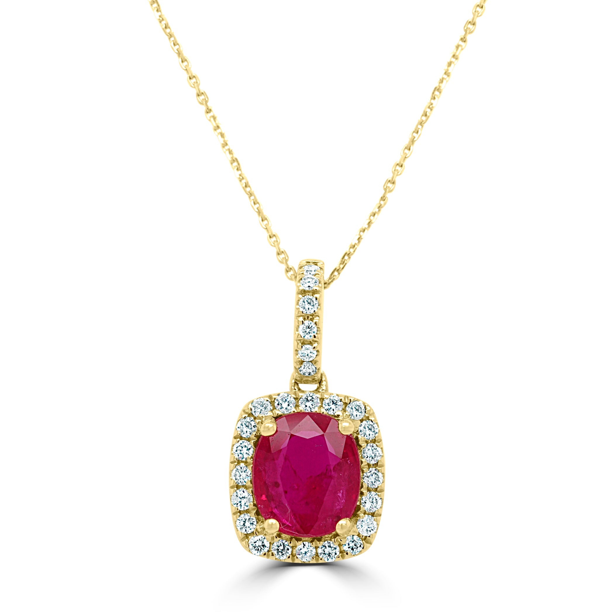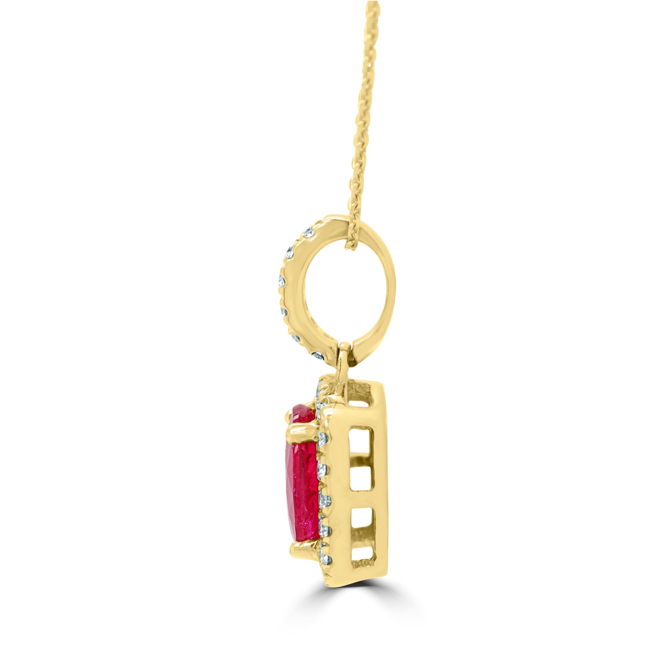 Set With A Stunning Oval Cut Ruby, This Magnificent Pendant Is Designed With 14K Yellow Gold For A Rich Finish. Bordered By Gorgeous Round Cut Diamonds.