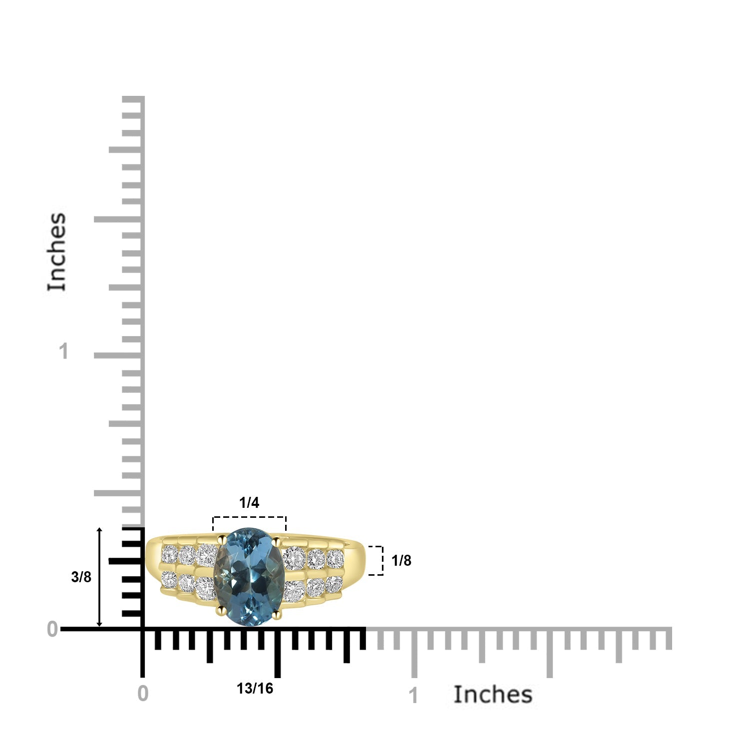 Crafted with 18k yellow gold, this ring is sure to add a touch of shine to your overall look. With exquisite workmanship and the enchanting radiance of oval-cut Aquamarine and round Diamonds, this alluring ring gears up your style.
