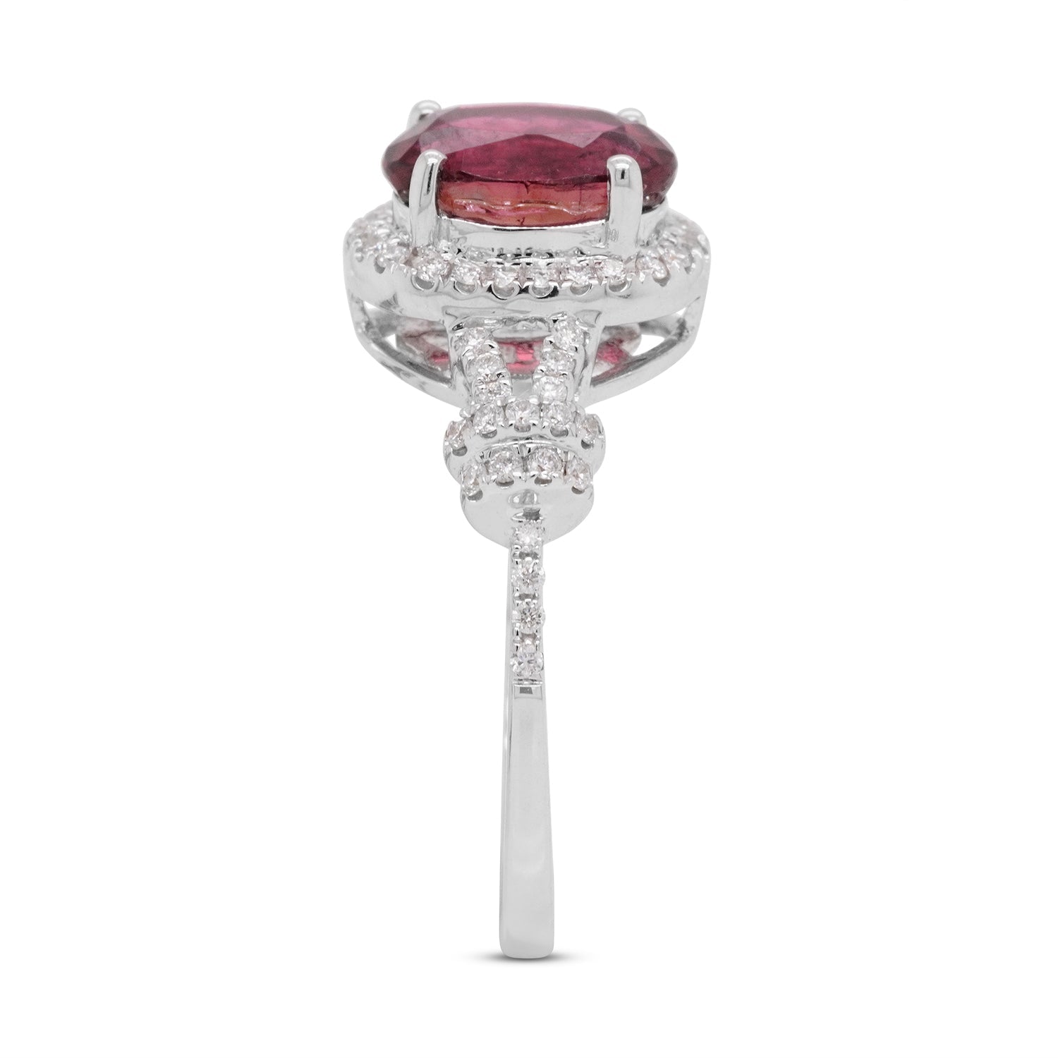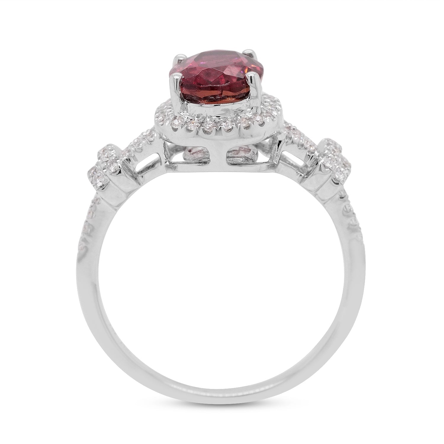 A great choice for everyday wear, this delightful ring is the perfect blend of color and style. Featuring an admirable tourmaline in an oval cut, this modern jewelry works well with any look for an elegant finish. The adorable round diamonds add the necessary bling, bringing a smile to your face every time you glance at them. Crafted in 14K white gold, opt for this enchanting ring soon!