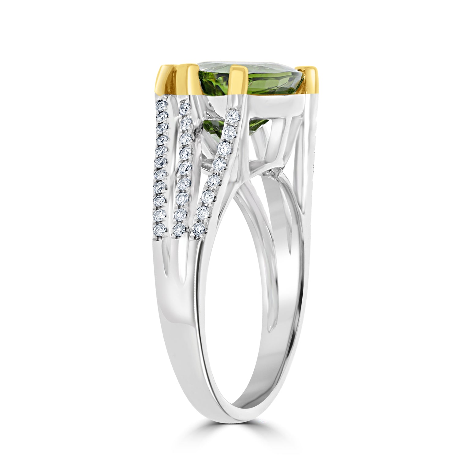 Embellished With An Eye-catching Trillion Cut Paraiba, This Glow Of Luxurious Jewelry Is Further Accentuated By The Shimmering Round Cut Diamonds Around It. Designed With 18k Two-tone Gold, Complete Your Ensemble For Any Occasion With The Dazzle Of This Gorgeous Ring.