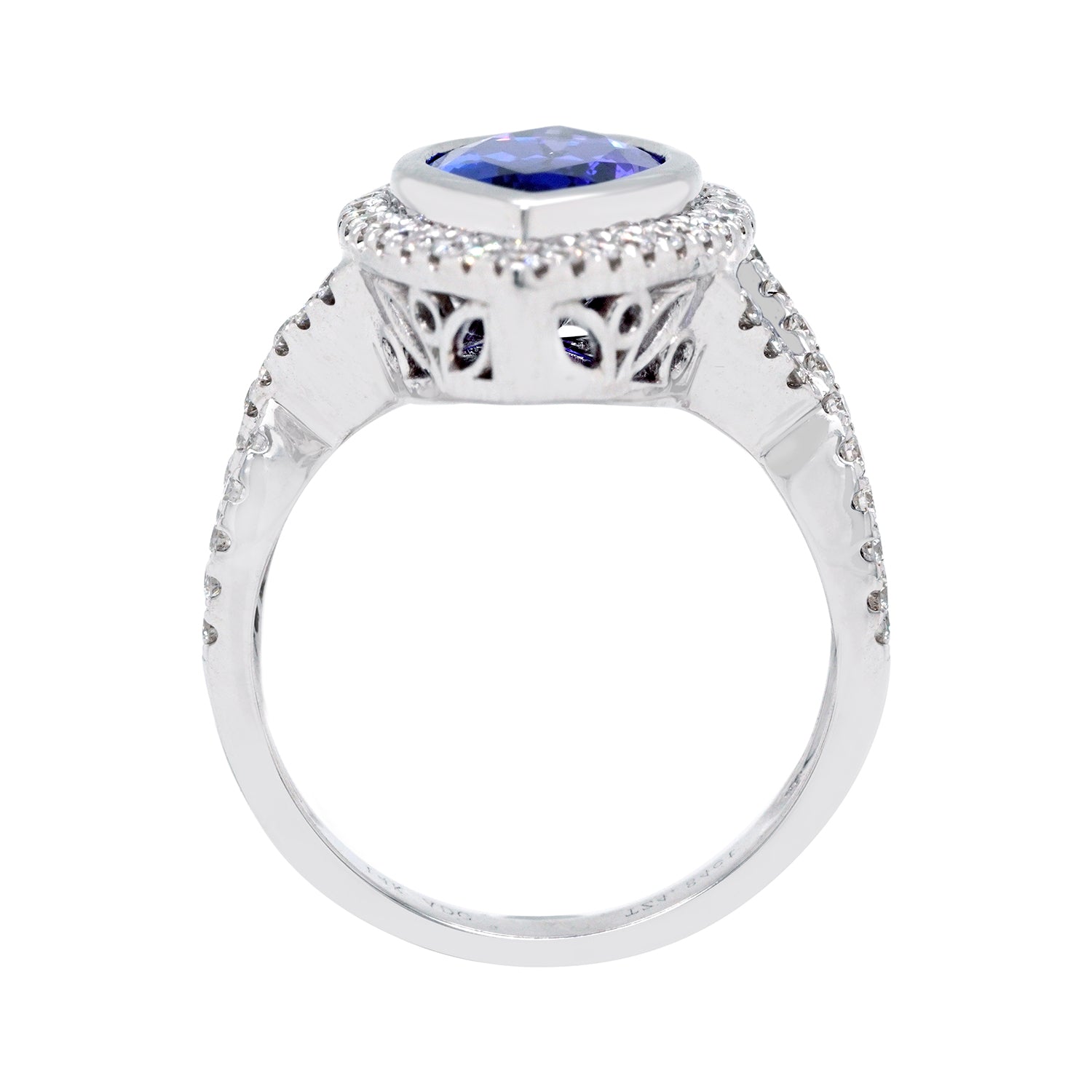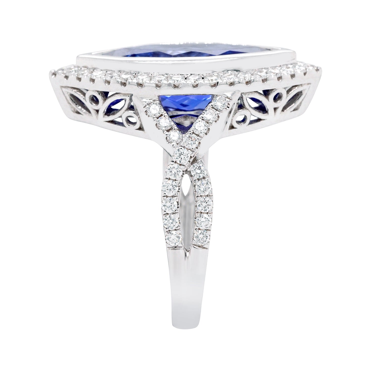 A combination of striking colors and styles that are hard to miss, the spectacular finish of this magical ring enhances your ensemble by leaps and bounds. Featuring a stunning Tanzanite in a marquise cut, it flaunts round diamonds that surround the mesmerizing shade of the jewel, giving it an unblemished look. Crafted in 14K white gold, this is a one-of-a-kind luminous ring!