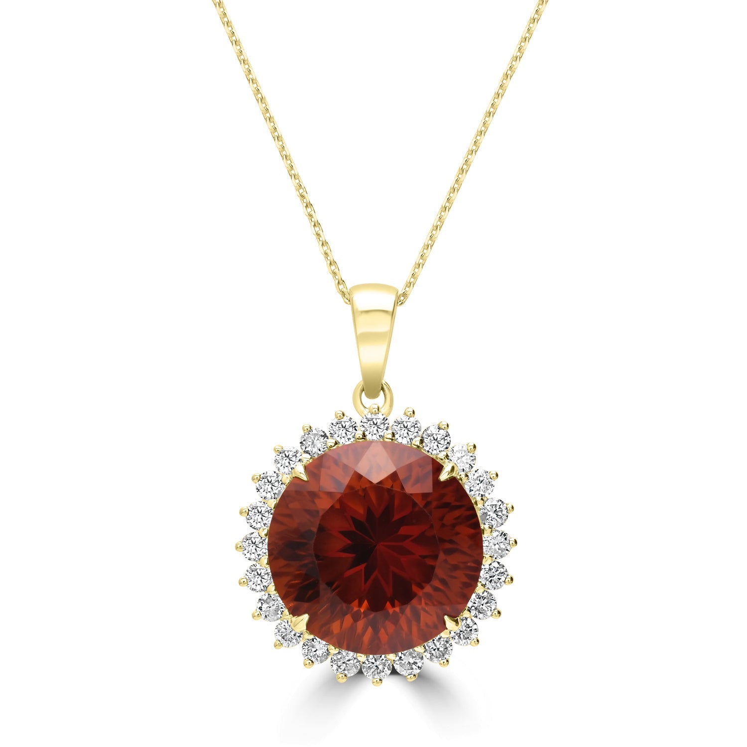 This pendant is beautifully designed from 18K yellow gold and set with a round-cut Citrine and sparkly round Diamonds.
